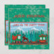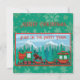 Merry Christmas Train Invitation showing a cartoon train with little Scotty Dog riding it and the words, "Merry Christmas. Jump on the Party Train"