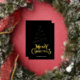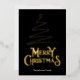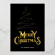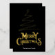 Gold foil Christmas card with Merry Christmas in script style font and tree design. You can customise to enter your family name and also to change the black background colour if you like.
