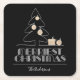 The words Merriest Christmas in retro vintage lettering, a white sketch tree with faux gold foil ornaments and gifts are featured on these black square paper coasters - personalised with your family name. Stylish for any Christmas holiday occasion or give as a hostess gift. MATCHING items in our store.