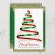 This corporate greeting card features ribbon Christmas tree in red and green with gold glitter accent. Text "Merry Christmas" and personalised with your company name. Back features gold glitter on green background with custom message and your company logo. Perfect for sending season's greetings to clients, employees and everyone on your list.