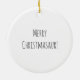 This funny Merry Christmas Ceramic Ornament features cartoon illustration of the cute Dinosaur wearing a Santa Hat and decorating the Christmas Tree. The illustration is designed in traditional Christmas colours: green, red, yellow. Back of the ornament has a customisable text: "Merry Christmasaur!".
