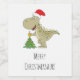 Merry Christmas Tree Cute Dinosaur Santa Hat Wine Label