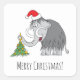 Merry Christmas Tree Cute Mammoth Santa Hat Square Sticker