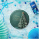 Gorgeous gold script on an elegant green Christmas tree party paper plate that gives the unique illusion of looking 3D complete with a pretty star at the top on this holiday party decor. A modern handwritten scrawl above your personalised family name.