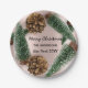 Merry Christmas Tree Green White Snow Rose Paper Plate