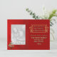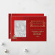 Festive red and gold glitter look 2 photo holiday photo card template- Customised photo greeting card with holiday photo templates for two favourite family photos insert. Space for a large family photo on the left front framed by a red evergreen Christmas tree shadow with a whimsical Christmas tree in white, green and red that reads A Very Merry Christmas placed in front of the family photo. Merry Christmas and Best Wishes for a Happy New Year is printed on the right with a gold scrolls frame in gold glitter look letters with a black shadow to make the season's greeting stand out. Against a dark red background. From our home to yours holiday text template for family name, family members, and the holiday year. Any of the text may be changed of course. Coordinating red evergreen tree shadow background on the back, too, has another large Christmas photo template and cute Christmas tree. All-occasion winter design is great for many winter special occasions, not just Christmas greeting cards- Christmas caroling, Christmas party, winter party, and more. We also have this modern and bright holiday design on other office supplies and gifts. Just visit our online Zazzle shop for lots of other winter, holiday and Christmas designs. Upload your own family photos and enter your own personal information for personalised Christmas photo cards. Change the text colour, font style, or wording if you like.