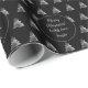 Merry Christmas Tree Pattern Elegant Black Grey Wrapping Paper