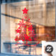 Christmas Tree window cling lettered with "we wish you a merry christmas". The tree is made up of snowflakes, stars and flowers with the festive greeting at the base. The template is set up for you to customise the design with your company name or marketing message. To change any of the colours, click "customise further".