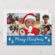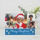 Merry Christmas Tree Photo Collage Blue Flat Holiday Card