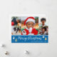 Spread Christmas cheer with a custom photo holiday card! This festive design includes six of your favourite photos — perfect for photos of kids, family, friends, and pets. Personalise the template with your family name, and a personal message. It features a photo collage and script typography, with Christmas tree and star motifs — a blend of traditional Christmas elements and modern style, with simple, clean lines and geometric shapes. Printed colours: blue, white and gold.