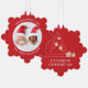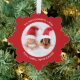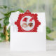 Your photo, family name and year on the front and the words Merriest Christmas in retro vintage lettering with a sketch of a tree with gold ornaments and presents are featured on these red paper ornament holiday Christmas greeting cards. Printed on your choice of paper, default is Pearl Ice, measures 5.25" x 5.25" and includes ribbon to hang the cards. MORE styles in our collection.*TIP: Upload a high resolution, photo cropped to square shape to ensure your photo is centred correctly. MORE designs in our collection.