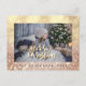 Merry Christmas Tree Rose Gold Spark Photo Glitter Postcard