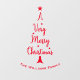 A window cling with the test 'A Very Merry Christmas' in a modern trendy script in the shape of a Christmas tree decorated with stars.