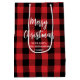 Merry Christmas Tree Simple Buffalo Check Pattern Medium Gift Bag
