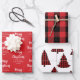 This design features a merry Christmas tree cute custom, a classic simple red calligraphy script, a classic buffalo check plaid pattern, a custom holiday greeting gift wrap, a Christmas gift wrapping supplies, a stylish trendy typography font text, simple Christmas tree pattern style, a classic country farm farmhouse design, a custom Christmas wrapping paper, with a red and black buffalo plaid