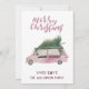 Fun plum colour and green watercolor Merry Christmas Card features a holiday scene with a tree atop a van, "With Love" in an ornament topography. Easily customise with name.pl