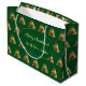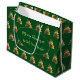 Merry Christmas Tree with Candles Elegant Gold Faux Gold Brown on Christmas Green Background Christmas Trees with Gift Tag Label Design, you can change the custom text Merry Christmas! With Love, Santa with your name and text, Large Glossy Gift Bag