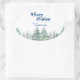 Merry Christmas trees forest Watercolor script Oval Sticker