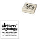 Return address rubber stamp featuring the text "Merry Christmas" in a retro font. Below are template fields for your name and return address.