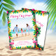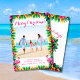Send tropical holiday greetings with this bright Hawaiian style Christmas photo card. Features "Merry Christmas" in script typography, your favorite coastal photo framed with watercolor hibiscus flowers and palm leaves, and your personalized holiday greeting. The back has tropical flowers and palm leaves with a colorful "Aloha". A fun tropical holiday card brought to you by Cherry Lane Designs!
