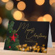 This gorgeous custom non photo Merry Christmas card features modern gold script over twinkling lights next to a festive Christmas tree that is decorated with red and green ornaments. Customise these elegant holiday cards for your friends and family with a beautiful message in the black night sky.