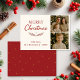A simple and elegant Christmas card featuring two easy-to-edit photo spaces and a festive “Merry Christmas” greeting in classic red script and serif type. Accented with a gold star and botanical details, this timeless design is perfect for families looking to share their holiday joy. The back showcases a rich red background with scattered gold stars, completing the card with a warm and festive touch. Designed for effortless personalisation, this holiday flat card is a modern classic.