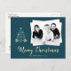 Stylish and modern Christmas holiday photo postcard with a family photo and typography. On the front of the postcard is an elegant snowflake Christmas tree, Merry Christmas wish, the family name and year, and a photo - insert a photo of your family or any other of your favourite photos into the template. The design goes great with a black and white photo. On the backside is a Christmas tree made of snowflakes and a sender`s name. Personalise all the text on the postcard or erase it.