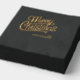 REAL FOIL! Merry Christmas and your name is featured on these elegant black holiday cocktail party napkins. Choose gold or silver foil.