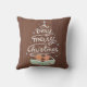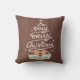 Decorate your home this holiday season with this cute and elegant typography Christmas throw pillow! It comes with a pair of reindeers with striped scarves who are rubbing their noses. The words "A very merry Christmas" is treated with a typography design that makes it look as though it is spiralling out of the Christmas book. The book has Christmas icons such as a Christmas stocking, candy cane, Christmas hat and decorative ornaments. A wooden panel texture for background.