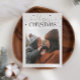 Elegant and modern holiday card featuring a typography text that says "Merry Christmas" with a picture. Add another photo on the back along with your message. Background is white.
