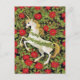 Painting of Christmas Unicorn with red poinsettia flowers and green leaves on a dark background.