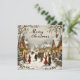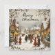 A vintage style Christmas scene design. Snow covered street and rooftops, people in the street with presents. The text on the back is completely customisable. If you do not want to use the text space, just hide it.
