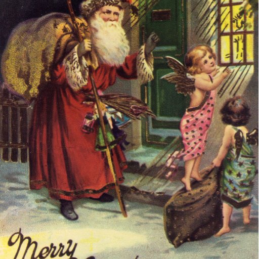 Merry Christmas, Vintage, Santa and Angels Holiday Card