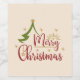 red merry christmas text with a green tree and gold stars. background colour can be changed.