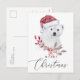 "Merry Christmas" watercolor cute polar bear postcard.