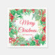 Merry Christmas Watercolor Holly Wreath Holiday Napkin