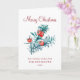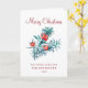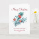 Merry Christmas holiday card, with brushscript text and hand painted in watercolor technique red yew berries and leaves, with customisable text on the front, inside and back of the card.