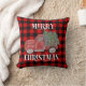 Merry Christmas Watercolor Truck Buffalo Plaid Cushion