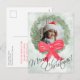 Merry Christmas Watercolor Wreath Photo Frame Holiday Postcard