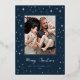 Illuminate your holiday greetings with this enchanting and modern photo card, capturing the magic of a starry night! The deep navy blue background is covered in a dazzling, all-over pattern of twinkling stars and sparks, all beautifully accented in bright silver foil. Your favorite family picture is elegantly framed, while the handwritten-style "Merry Christmas" script glows in brilliant silver foil, giving your card a truly festive and shimmering finish.