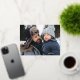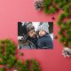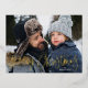 Cute holiday photo postcard with "Merry Christmas" featured at the bottom of the card in a handwritten gold foil script. Personalise the whimsical Christmas postcard with your horizontal photo and family name. The foil holiday postcard reverses to display your return address, additional photo, and custom message.
