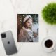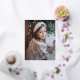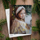Cute holiday photo postcard with "Merry Christmas" displayed in a handwritten gold foil script. Personalise the whimsical Christmas postcard with your vertical photo and family name. The foil holiday postcard reverses to display your return address, additional photo, and custom message.