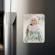 Cute holiday photo magnet with "Merry Christmas" featured at the bottom of the design in a green handwritten script. Personalise the whimsical Christmas magnet with your vertical photo and family name.