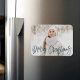 Cute holiday photo magnet with "Merry Christmas" displayed at the bottom of the design in a navy handwritten script. Personalise the whimsical Christmas magnet with your horizontal photo and family name.