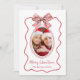 Merry Christmas Whimsical Red Wavy Frame Bow Photo Holiday Card