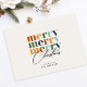 This customisable Christmas card features a beautiful, whimsical winter village scene on the front, with colourful houses set against a snowy landscape under a starry night sky. The charming, hand-drawn style evokes a cosy, festive atmosphere, perfect for spreading Christmas cheer. On the back, the card offers a modern, minimalist design with "merry merry merry Christmas" displayed in bold, retro-inspired typography. Add your name/s for a personal touch. The soft colour palette combined with elegant script adds a stylish touch, making this card an ideal way to send warm holiday greetings to friends and family.