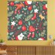 A festive holiday pattern featuring reindeer, ornaments, and seasonal greenery on a dark background. Perfect for adding a touch of whimsy to Christmas decor.