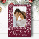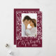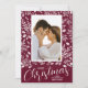 White berries, leaves and dots on a burgundy background (or any color to match your photo) accent your favorite photo with your names and greeting in chic lettering at the bottom. **ADD more photos or details on the back. Select Matte for heaviest paper and high definition for best print quality.