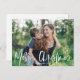 This modern holiday photo card features white calligraphy script over a full-bleed photo. This design accommodates a single, horizontal photo on the front of the card. On the reverse side you will find plenty of space to write a personal greeting. Postcards are a easy and economical way to send holiday cards to everyone on your list!