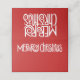 A unique, original, hand-drawn, cheerful Merry Christmas text design in white on red, perfect for celebrating the festive season.